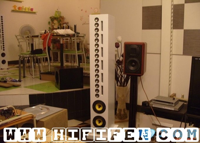 JVC带试作为超高用,上限30000HZ,优雅频响范围450-15000,作为中高用,F5作为中低用,宝华本来就是炮喇叭,用于超低,我玩过不少炮,很少有合适用于音乐的,宝华这款就可以,所以放弃F10.顺便把另一对也装起,这对箱用的喇叭喇叭要好些,带式高音用的是马田上的,4只低音用威发,两者区别在于后者在高音方面细节交代更为丰富,清晰,柔顺,低频下潜要深不少,基本可以配宝华使用了.