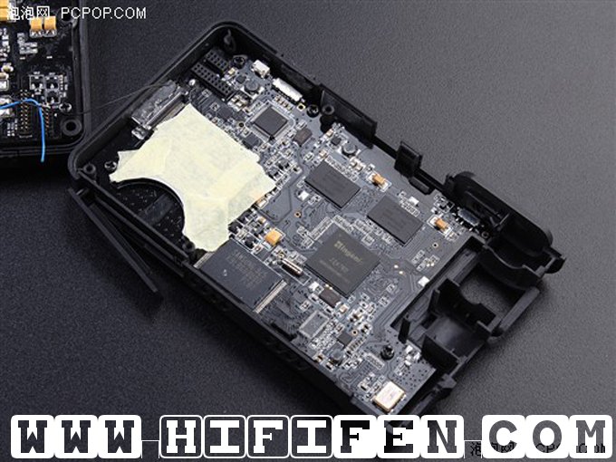 图中粉红色为“三星 K9LBG08U0D”4GB MLC 闪存颗粒(对应框图中的闪存),播放器的系统存储其中内存,系统一般会占用10MB-1GB的空间(以Linux开发板做参考),其余空间可以设计成内置存储(但是目前HM-901貌似没有设计,因为其没有内置存储空间)。