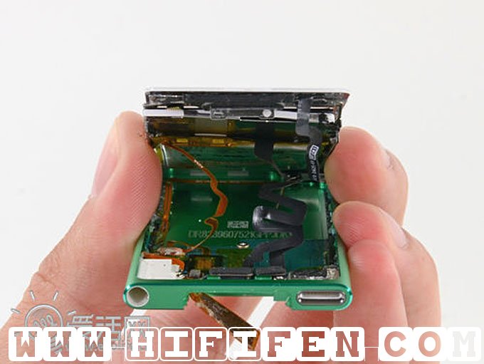 接着,我们将数字转换器与屏幕分开,于是iPod nano 7就彻底被拆开了